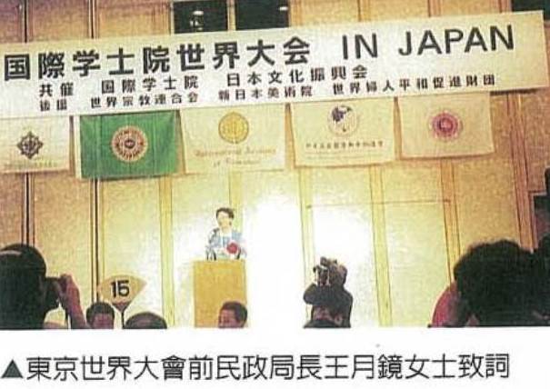 1996年發起了綿密的世界和平大會--於中華民國談灣桃園縣政府、台南市議會及高雄市政府的強力推動下,聯合國(UN)世界大學總長會議,世界宗教法王廳,世界婦女平和促進財團,(財)中華文化綜合發展研究院,國際同心會世界總會、國際和平協進會、中日技術合作研究會、中華文化協會、各民意機關及地方社團等及其他許多組織的協力配合蔚盪盛況。