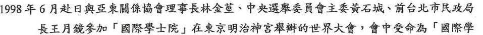 1997年11月國際學士院院士.獲得國際學士院教育獎。