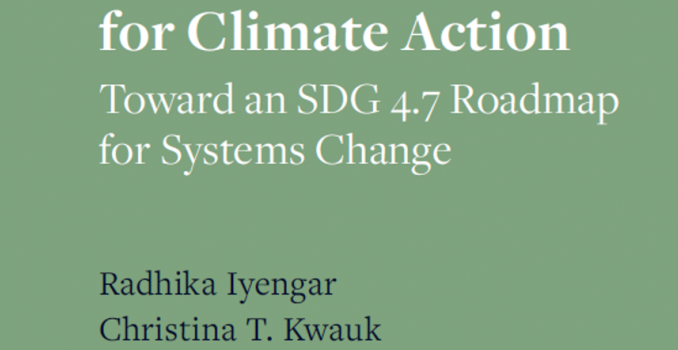 This is also the key message of Curriculum and Learning for Climate Action: Toward an SDG 4.7 Roadmap for Systems Change, a new IBE book that was just published in the IBE on Curriculum, Learning, and Assessment series. The book was co-edited by Radhika Iyengar (Earth Institute,Center for Sustainable Development, Columbia University) and Christina T. Kwauk (The Brookings Institution).