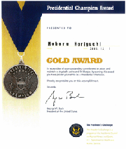 2005年12月1日 醫學博士 堀口 升先生榮獲「美利堅合眾國保健省福祉服務機構」頒發的「總統最優秀獎」金獎