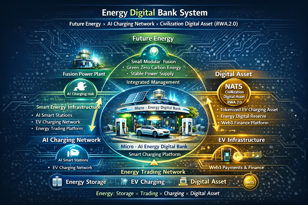 全球獨一「未來綠色小型核融合新電能 × AI光影充電樁基礎設施 ×全球首枚 NATS RWA2.0數位資產」三位一體的獨一市場需求模型-- 全球Top1微型「AI智慧電能數位銀行」。 三層Top1高價值結構 + 戰略資產投資暨永續經營組合配置 + 全球首枚 NATS RWA2.0策略數位資產,完成高創新差異化市場戰略 創造高市佔率。